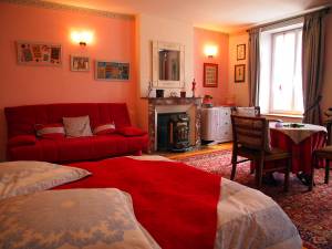 Cet espace lumineux vous conduit vers un grand lit double parsemé de fleurs fraichement ceuillies, et vous imprègne de couleurs et de senteurs sauvages.
